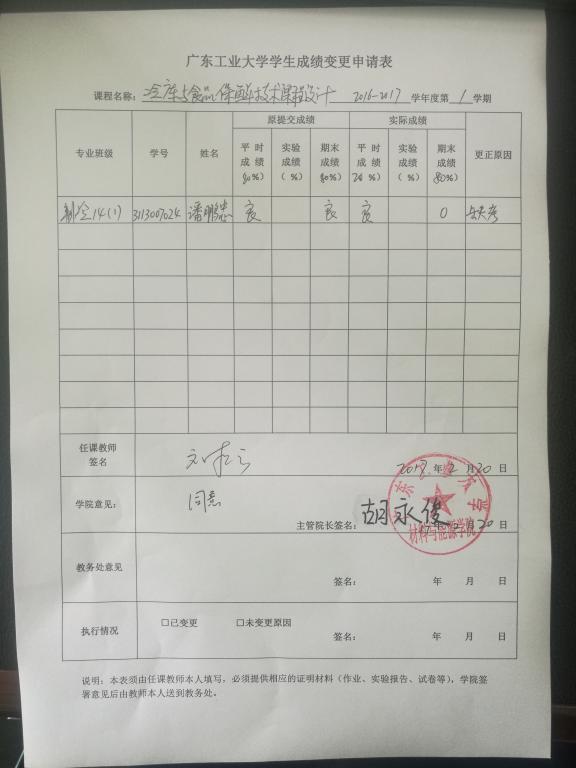 根据《广东工业大学理论课程考核管理办法》(广工大教字【2007】15号)文件的相关规定,现就我院开设的《冷库与食品保鲜技术课程设计》(2016-2017-1学期)学生成绩变更事项予以公示。 公示时间:2017年2月20日至2017年2月27日 如有异议,请署名书面反映到学院教务办公室,不接受匿名投诉。